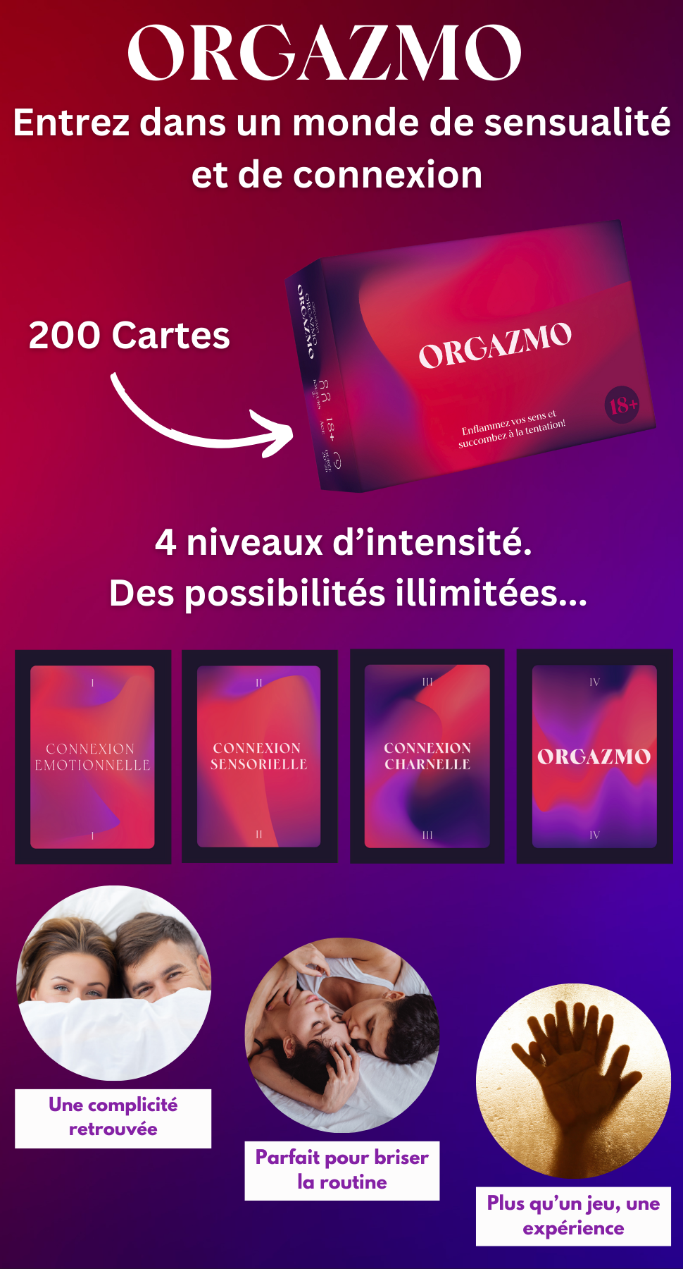 Orgazmo n'est pas simplement un jeu de société pour adultes ; c'est une expérience complète conçue pour raviver la passion, renforcer les liens émotionnels et explorer de nouvelles dimensions de la sensualité et de l'intimité. Avec ses 200 cartes soigneusement élaborées, réparties sur quatre niveaux de connexion allant de l'émotionnel au charnel, Orgazmo va bien au-delà des jeux de couple traditionnels. Il offre un moyen ludique et engageant d'approfondir votre relation tout en vous amusant. Idéal pour les soirées en tête-à-tête ou comme cadeau de Saint-Valentin, d'anniversaire ou de toute autre occasion spéciale. Ne manquez pas l'opportunité d'ajouter un peu de piquant à votre vie amoureuse avec Orgazmo.